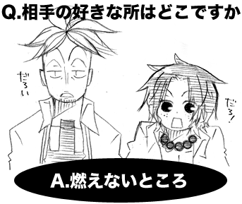 拍手で「炎系同士最強カプですよね」というコメントから。